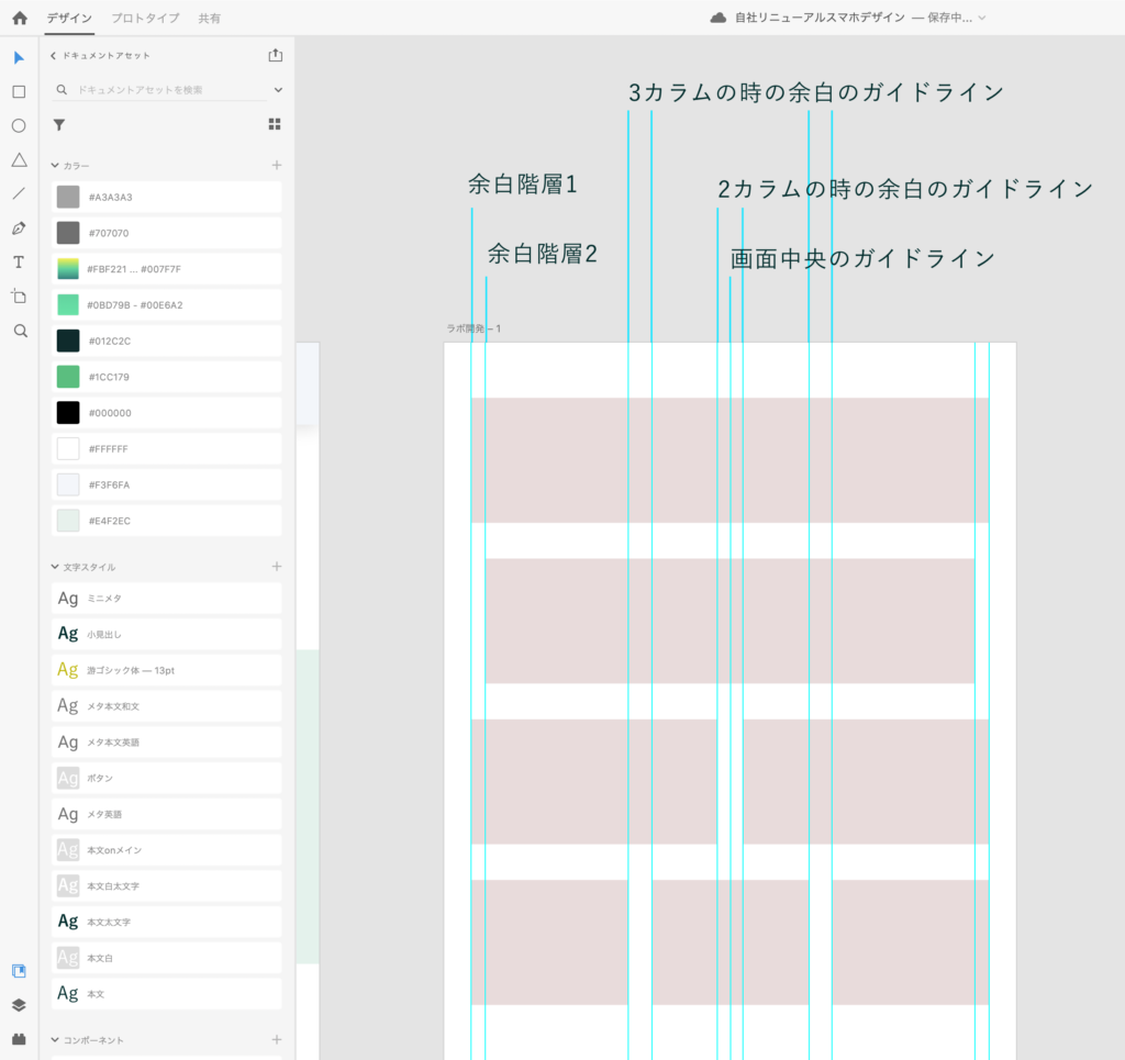 デザインに取り掛かる前に最初にガイドラインの設定をする。]